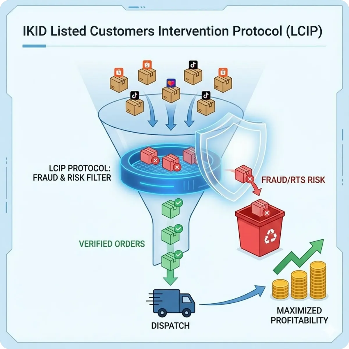 We run a proprietary Listed Customers Intervention Protocol. We manually flag duplicates and 'High Risk' COD orders to prevent RTS fees.